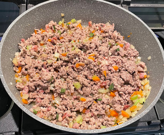 Heat 1 tbsp of olive oil over medium high heat, add the meat until it has colour on the outside