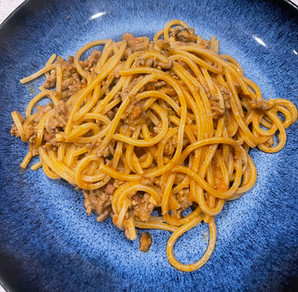 This one is from The Burnt Butter Table. This was more complex to make and, in my opinion, not as good as Marcella Hazan's version. It does coat the pasta well but didn't seem to bring anything extra for the additional ingredients and volume and I'm not keen on losing half a bottle of wine to a pasta dish! I didn;t think the pancetta came through. My team have recommended further things to try to the trial continues.....
